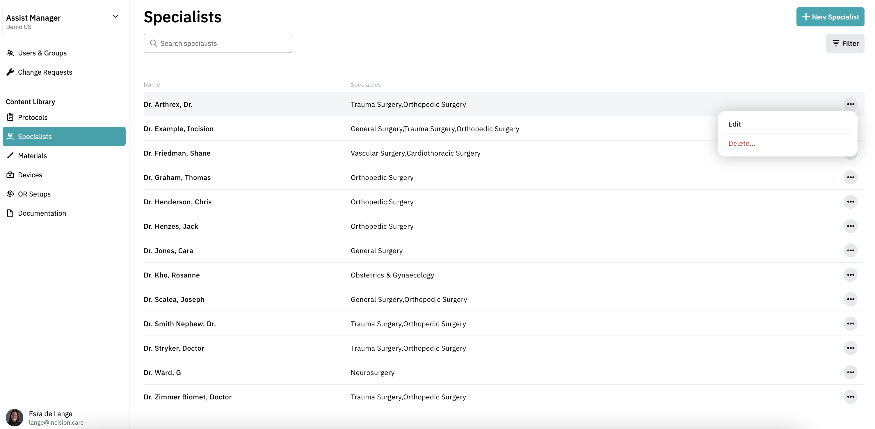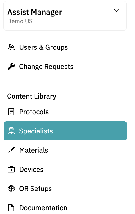 Below you'll find step-by-step instructions on how to add specialists to the Incision Assist Manager and how to record their preferences in the protocols. Important: You must first add a specialist to the Content Library.