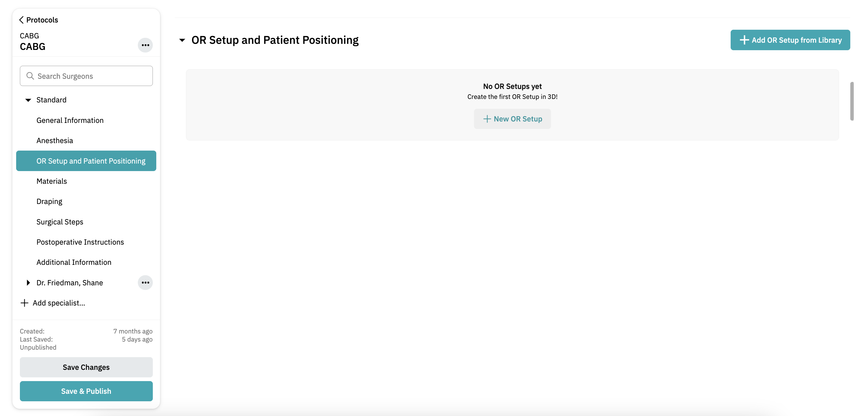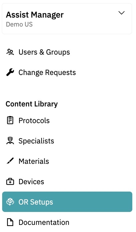 - Open the OR Setup and Patient Positioning Tab: In the left-hand menu, click OR Setup and Patient Positioning.