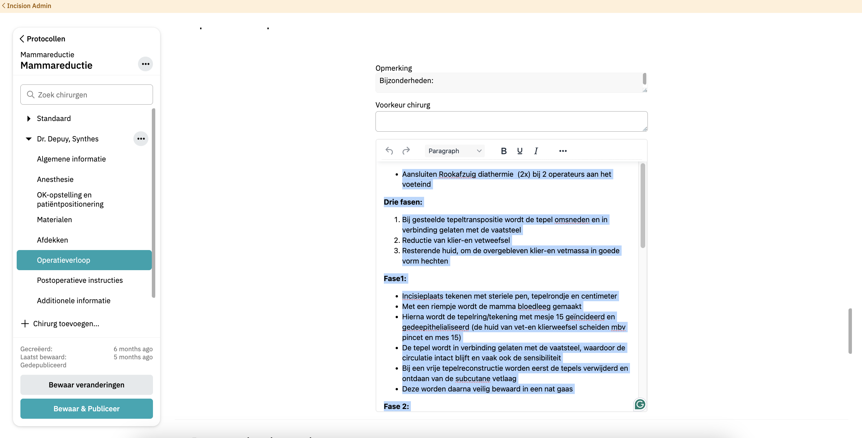 - Publiceren: Klik op 'Publiceren'/'Bewaar & Publiceer' om het protocol beschikbaar te maken in de Incision Assist-app en Assist Web.