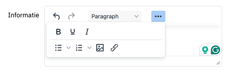 Tekstvak: Gebruik het tekstvak om de afdekmethode in detail te beschrijven. Zorg voor duidelijke en precieze instructies om de nauwkeurigheid te waarborgen. Gebruik de 3 puntjes om een tekst dik gedrukt, onderstreept of schuin te maken. Ook kun je bullet points toevoegen, of een link en/of plaatjes invoegen.